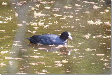 くちばしの赤いバンより少し大きいバンなので「オオバン」なのか?まっ黒い体にくちばしと額だけが真っ白い。