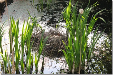 白鳥は人が近付いても、抱卵中は逃げないが、このオオバンは人影が近付くと、すぐに巣を放棄して逃げていった。その巣の中を見ると6個の卵があった(ハトの卵よりちょっと大きいかな)