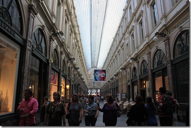 鼓笛隊の好きな(実は歩き疲れている?)上の姉二人をグランプラスに残して、若い方の姉妹と僕は、もう少しブリュッセル観光をするという事で別行動。上の写真は1847年完成のヨーロッパでも最も古いと言われる「ギャルリー・サン・チュペール」