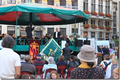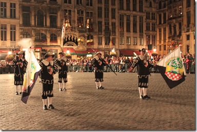 グランプラスの真ん中に鼓笛隊もやってきた。