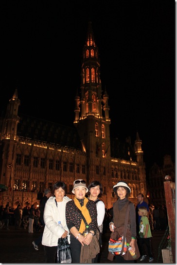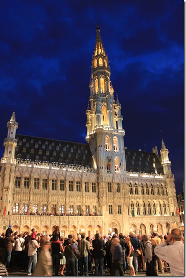 グランプラスでは市庁舎がライトアップされていた。