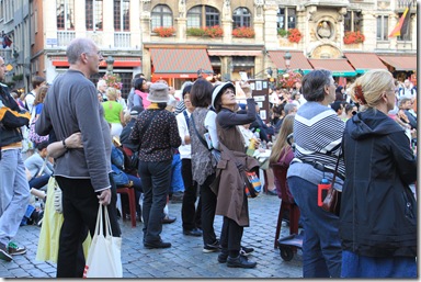 グランプラスに残しておいた、上の姉二人は指定の場所(クラシック音楽をやっていた舞台そば)から消えていて、探し回る事20分、・・・市庁舎前の縁石に座って、このステージ正面の一番前に陣取っているのを発見!